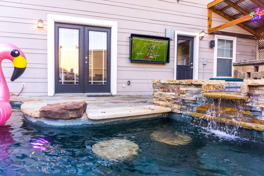 Heated pool with waterfall and hot tub — no extra fee!