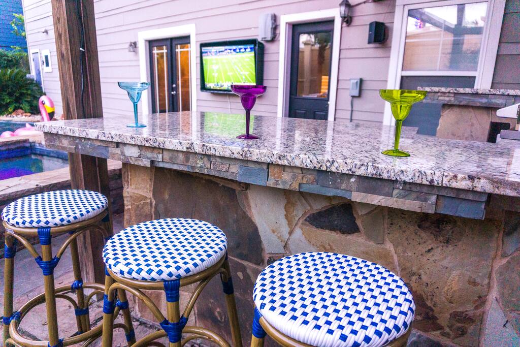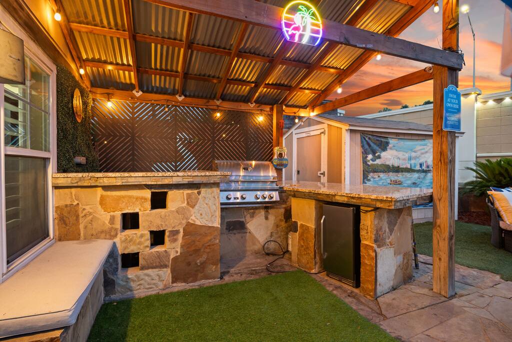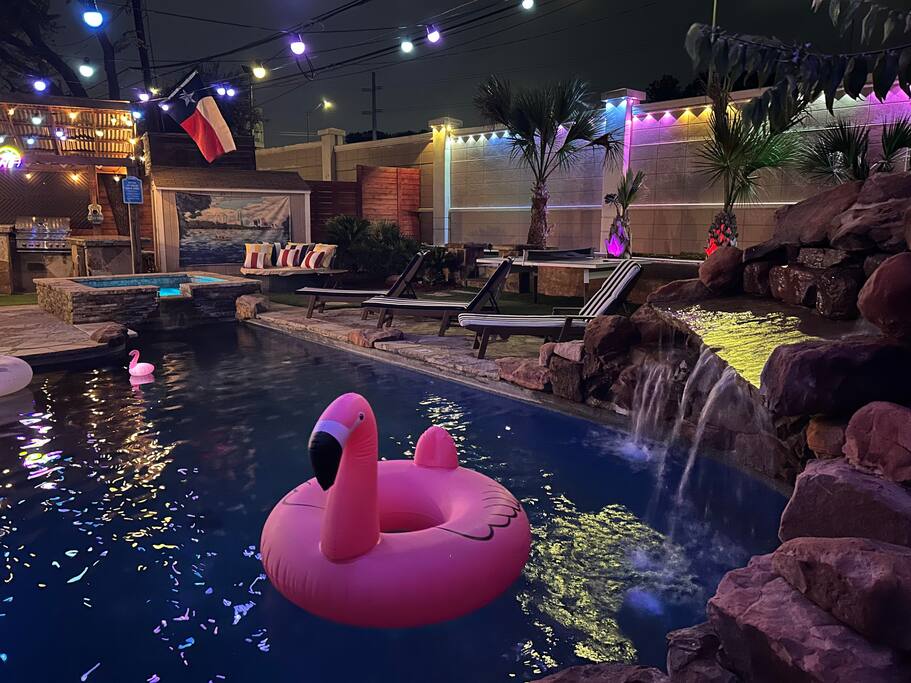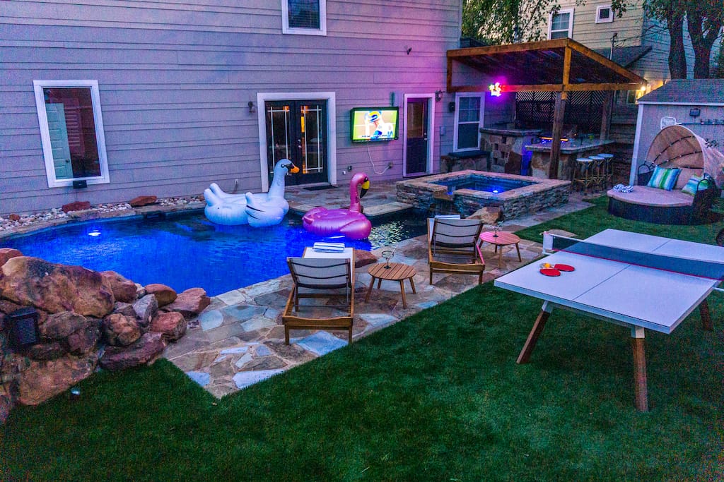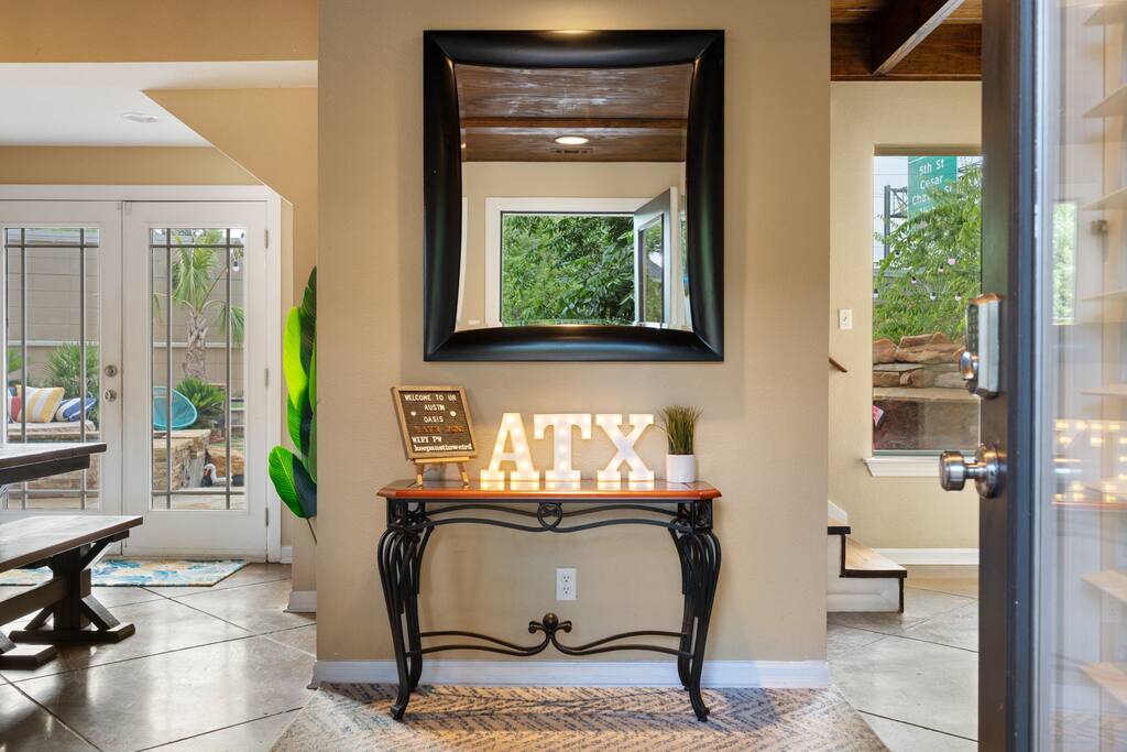Welcome to The ATX Oasis! Located in the best neighborhood, Tarrytown (where many Austin celebs live!). There is a heated pool and spa with a waterfall, sauna, ping pong table, cornhole, outdoor TV, speakers, bar + grill. Very close to downtown, Lake Austin & UT! *READ BELOW*